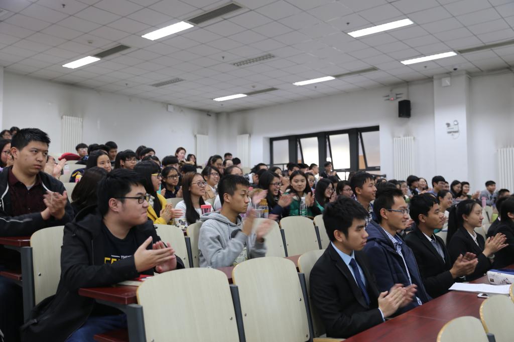 图为在场学生鼓掌表示谢意
